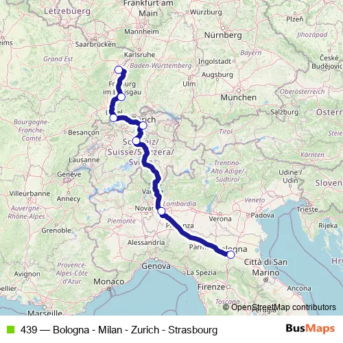 439 (Bologna - Milan - Zurich - Strasbourg) Bus in Luzern