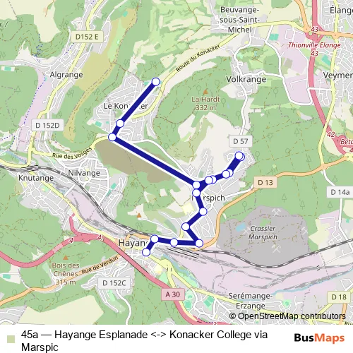 45a Bus - Hayange Esplanade <-> Konacker College via Marspic