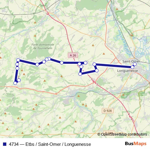 Bus 4734 - Etbs / Saint-Omer / Longuenesse: Full Schedule in Saint-Omer