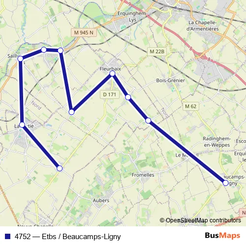 Click here to view the nearest 4752 - Etbs / Beaucamps-Ligny bus stop.