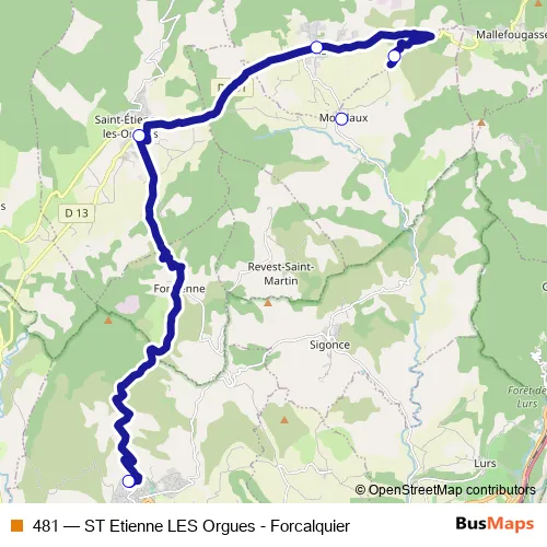 Click here to view the nearest 481 - ST Etienne LES Orgues - Forcalquier bus stop.