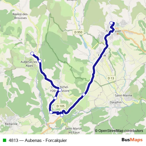Click here to view the nearest 4813 - Aubenas - Forcalquier bus stop.