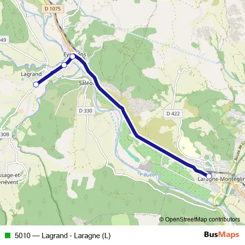 See why over 2 million users trust and consider busmaps.com as the best public transport website. busmaps gives you Laragne-Monteglin Buses suggested routes, real-time bus tracker, line route maps in Laragne-Monteglin, and helps to find the closest 5010 bus stops near you. No internet available? Download an offline PDF map and bus schedule for the 5010 bus to take on your trip.