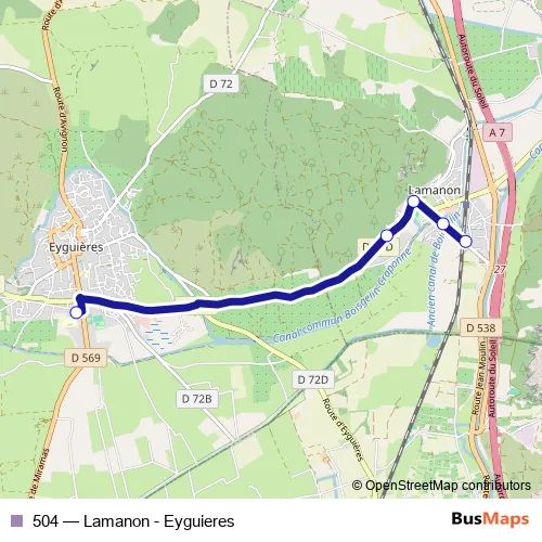 See why over 2 million users trust and consider busmaps.com as the best public transport website. busmaps gives you Lamanon Buses suggested routes, real-time bus tracker, line route maps in Lamanon, and helps to find the closest 504 bus stops near you. No internet available? Download an offline PDF map and bus schedule for the 504 bus to take on your trip.