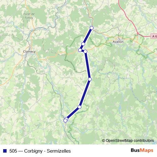 Bus 505 - Corbigny - Sermizelles in Vezelay: Stops & Timetable