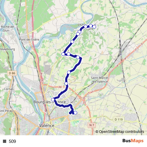 See why over 2 million users trust and consider busmaps.com as the best public transport website. busmaps gives you Valence Buses suggested routes, real-time bus tracker, line route maps in Valence, and helps to find the closest 509 bus stops near you. No internet available? Download an offline PDF map and bus schedule for the 509 bus to take on your trip.
