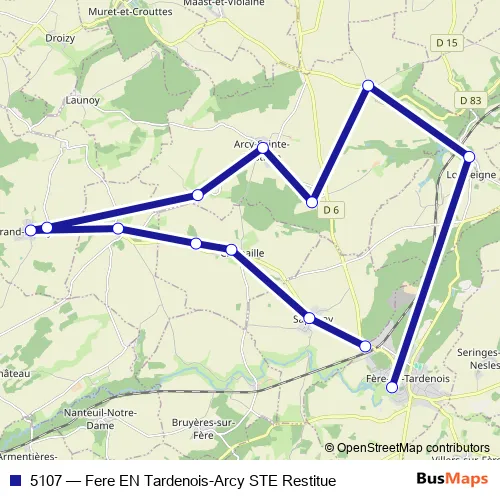 See why over 2 million users trust and consider busmaps.com as the best public transport website. busmaps gives you Fere-en-Tardenois Buses suggested routes, real-time bus tracker, line route maps in Fere-en-Tardenois, and helps to find the closest 5107 bus stops near you. No internet available? Download an offline PDF map and bus schedule for the 5107 bus to take on your trip.