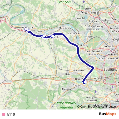See why over 2 million users trust and consider busmaps.com as the best public transport website. busmaps gives you Aubergenville Buses suggested routes, real-time bus tracker, line route maps in Aubergenville, and helps to find the closest 5116 bus stops near you. No internet available? Download an offline PDF map and bus schedule for the 5116 bus to take on your trip.