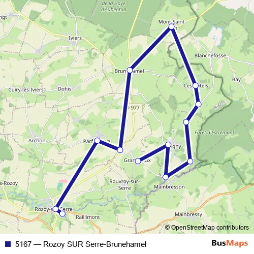 Click here to view the nearest 5167 - Rozoy SUR Serre-Brunehamel bus stop.