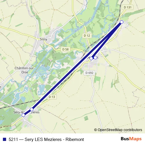 Click here to view the nearest 5211 - Sery LES Mezieres - Ribemont bus stop.