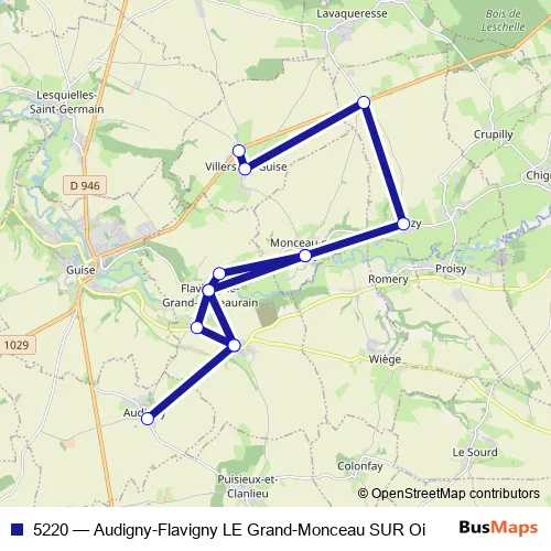Click here to view the nearest 5220 - Audigny-Flavigny LE Grand-Monceau SUR Oi bus stop.