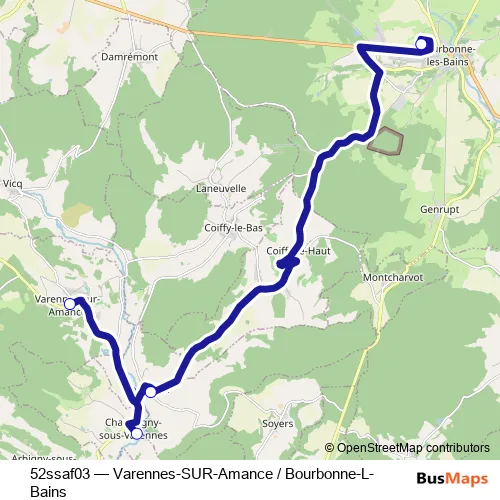 Bus 52ssaf03 - Varennes-SUR-Amance / Bourbonne-L-Bains in Chezeaux: Stops & Timetable