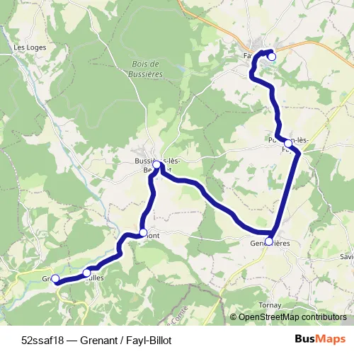 Click here to view the nearest 52ssaf18 - Grenant / Fayl-Billot bus stop.