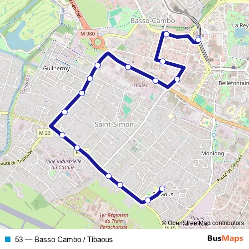 Bus 53 - Basso Cambo / Tibaous: Full Schedule in Toulouse