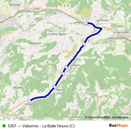 Click here to view the nearest 5307 - Valserres - La Batie Neuve (C) bus stop.