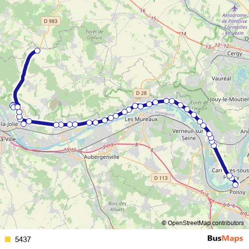 See why over 2 million users trust and consider busmaps.com as the best public transport website. busmaps gives you Mantes-la-Jolie Buses suggested routes, real-time bus tracker, line route maps in Mantes-la-Jolie, and helps to find the closest 5437 bus stops near you. No internet available? Download an offline PDF map and bus schedule for the 5437 bus to take on your trip.