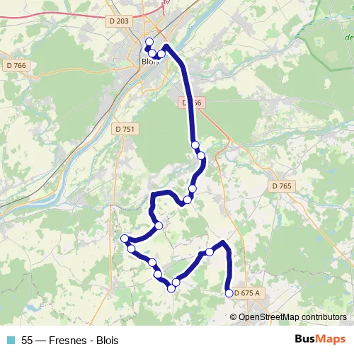Bus 55 - Fresnes - Blois in Blois: Stops & Timetable