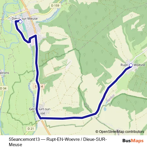 Click here to view the nearest 55eancemont13 - Rupt-EN-Woevre / Dieue-SUR-Meuse bus stop.