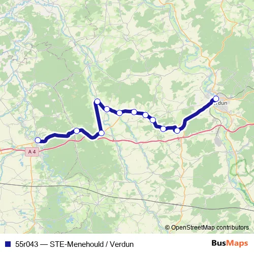 Services on the 55r043 - STE-Menehould / Verdun bus start at 07:41 on Monday, Tuesday, Wednesday, Thursday, Friday, Saturday.