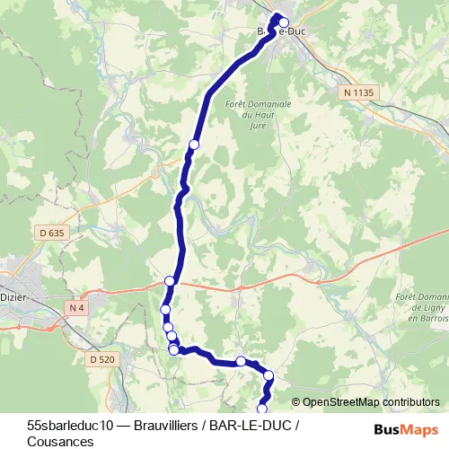 Bus 55sbarleduc10 - Brauvilliers / BAR-LE-DUC / Cousances: Full Schedule in Bar-le-Duc