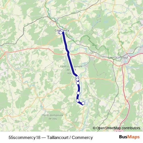 Services on the 55scommercy18 - Taillancourt / Commercy bus start at 18:10 on Monday, Tuesday, Wednesday, Thursday, Friday.