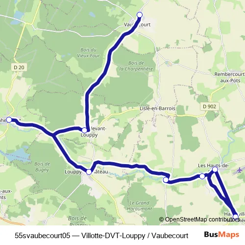 Click here to view the nearest 55svaubecourt05 - Villotte-DVT-Louppy / Vaubecourt bus stop.