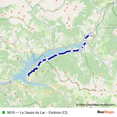 Click here to view the nearest 5616 - Le Sauze du Lac - Embrun (Cl) bus stop.