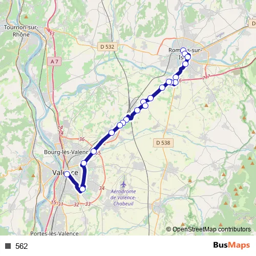 See why over 2 million users trust and consider busmaps.com as the best public transport website. busmaps gives you Valence Buses suggested routes, real-time bus tracker, line route maps in Valence, and helps to find the closest 562 bus stops near you. No internet available? Download an offline PDF map and bus schedule for the 562 bus to take on your trip.
