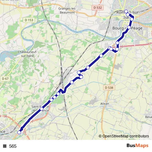 See why over 2 million users trust and consider busmaps.com as the best public transport website. busmaps gives you Valence Buses suggested routes, real-time bus tracker, line route maps in Valence, and helps to find the closest 565 bus stops near you. No internet available? Download an offline PDF map and bus schedule for the 565 bus to take on your trip.