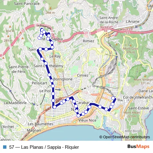 See why over 2 million users trust and consider busmaps.com as the best public transport website. busmaps gives you Nice Buses suggested routes, real-time bus tracker, line route maps in Nice, and helps to find the closest 57 bus stops near you. No internet available? Download an offline PDF map and bus schedule for the 57 bus to take on your trip.