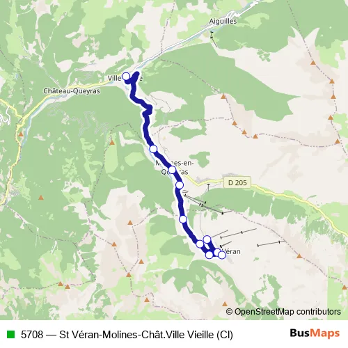 Click here to view the nearest 5708 - St Véran-Molines-Chât.Ville Vieille (Cl) bus stop.