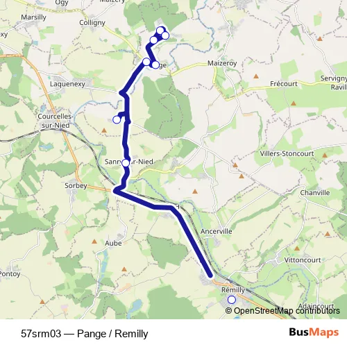 The first stop of the 57srm03 bus route is Pange - Mont / Croisement and the last stop is Remilly - College Pougue. 57srm03 (Pange / Remilly) is operational during on weekdays.