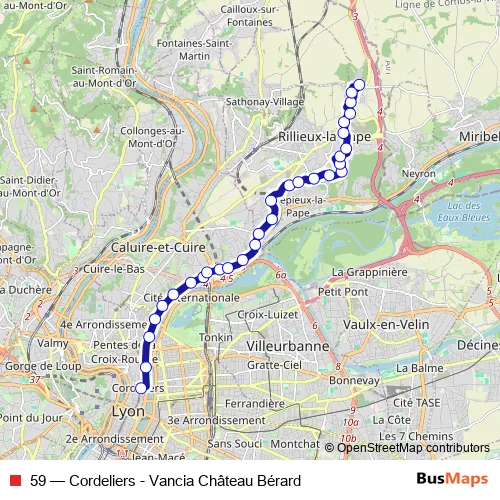 See why over 2 million users trust and consider busmaps.com as the best public transport website. busmaps gives you Lyon Buses suggested routes, real-time bus tracker, line route maps in Lyon, and helps to find the closest 59 bus stops near you. No internet available? Download an offline PDF map and bus schedule for the 59 bus to take on your trip.
