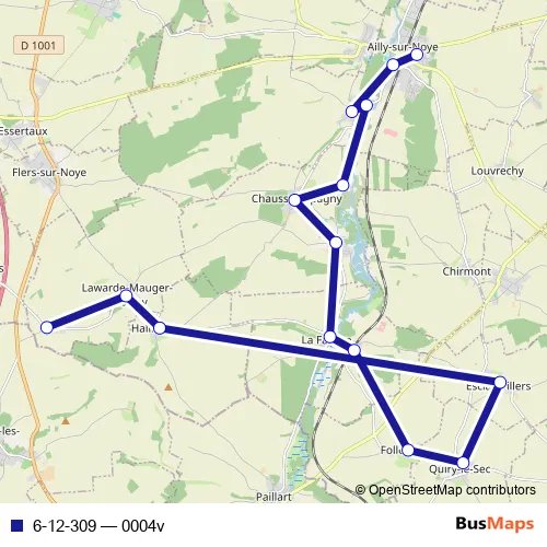 The first stop of the 6-12-309 bus route is Ailly-SUR-Noye - Collège William Henri Classen and the last stop is Lawarde-Mauger-L'Hortoy - L'Hortoy. 6-12-309 (0004v) is operational during everyday.