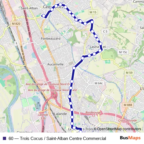 Bus 60 - Trois Cocus / Saint-Alban Centre Commercial in Toulouse: Stops & Timetable