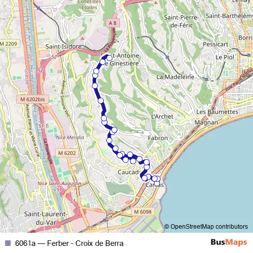 Bus 6061a - Ferber - Croix de Berra: Full Schedule in Nice
