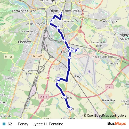 Bus 62 - Fenay – Lycee H. Fontaine Schedule in Dijon