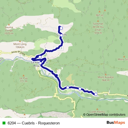 Click here to view the nearest 6204 - Cuebris - Roquesteron bus stop.