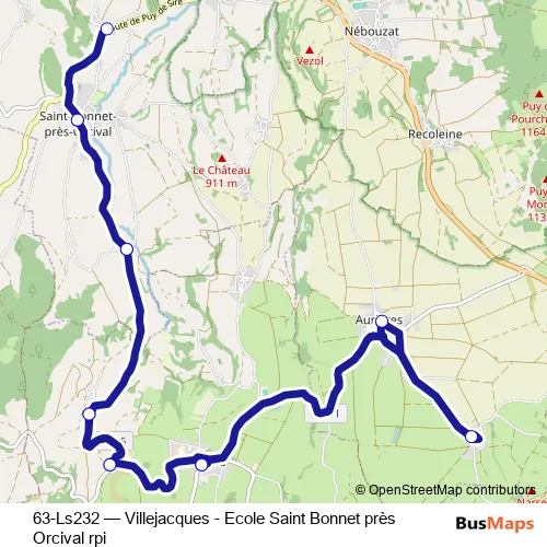 Bus 63-Ls232 - Villejacques - Ecole Saint Bonnet près Orcival rpi: Full Schedule in Clermont-Ferrand