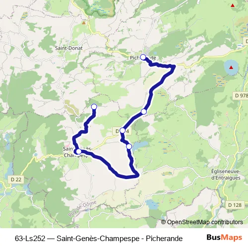 Click here to view the nearest 63-Ls252 - Saint-Genès-Champespe - Picherande bus stop.