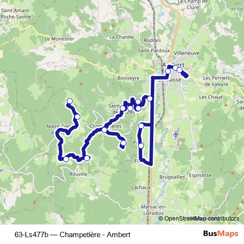 Click here to view the nearest 63-Ls477b - Champetière - Ambert bus stop.
