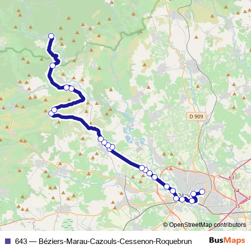 Bus 643 - Béziers-Marau-Cazouls-Cessenon-Roquebrun: Full Schedule in Beziers