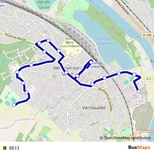 See why over 2 million users trust and consider busmaps.com as the best public transport website. busmaps gives you Verneuil-sur-Seine Buses suggested routes, real-time bus tracker, line route maps in Verneuil-sur-Seine, and helps to find the closest 6513 bus stops near you. No internet available? Download an offline PDF map and bus schedule for the 6513 bus to take on your trip.