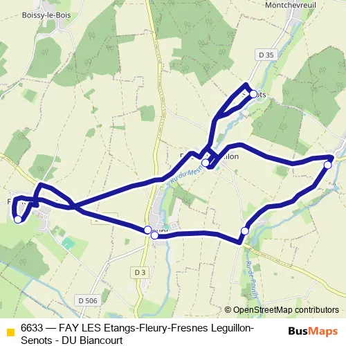 Click here to view the nearest 6633 - FAY LES Etangs-Fleury-Fresnes Leguillon-Senots - DU Biancourt bus stop.