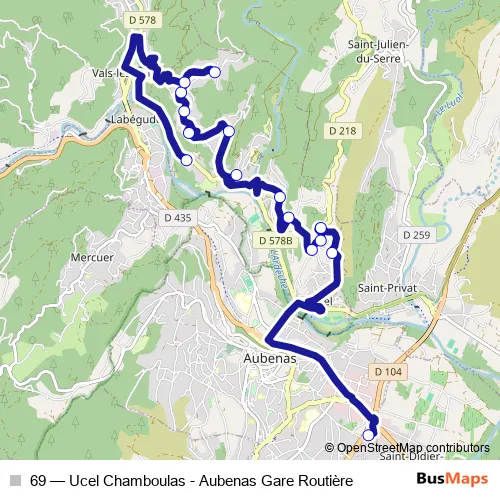 Bus 69 - Ucel Chamboulas - Aubenas Gare Routière: Full Schedule in Labegude