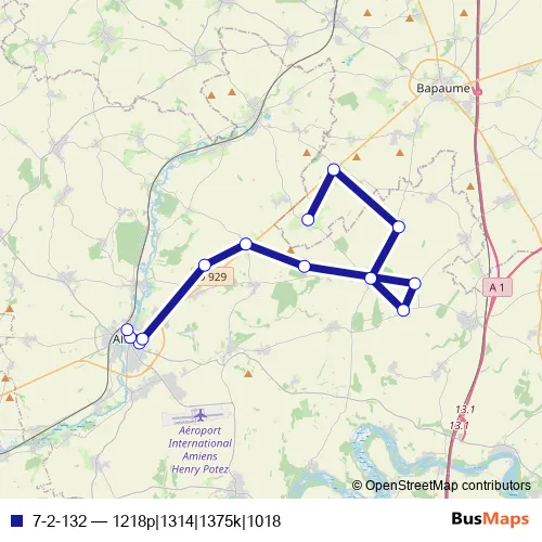 The first stop of the 7-2-132 bus route is Martinpuich - Eglise - Ecole and the last stop is Albert - Collège Charles de Foucauld. 7-2-132 (1218p|1314|1375k|1018) is operational during on weekdays.