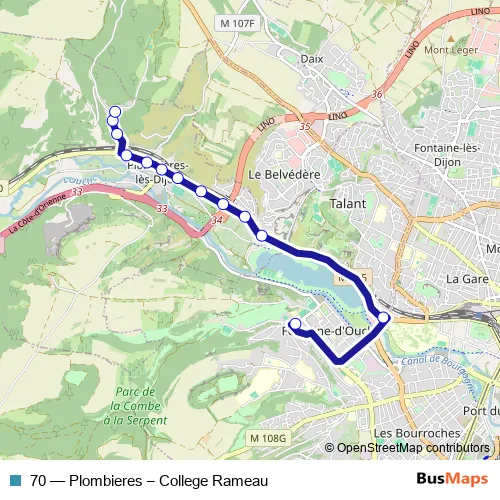 See why over 2 million users trust and consider busmaps.com as the best public transport website. busmaps gives you Dijon Buses suggested routes, real-time bus tracker, line route maps in Dijon, and helps to find the closest 70 bus stops near you. No internet available? Download an offline PDF map and bus schedule for the 70 bus to take on your trip.
