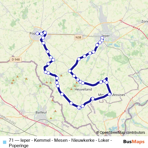 Bus 71 - Ieper - Kemmel - Mesen - Nieuwkerke - Loker - Poperinge Schedule in Ieper