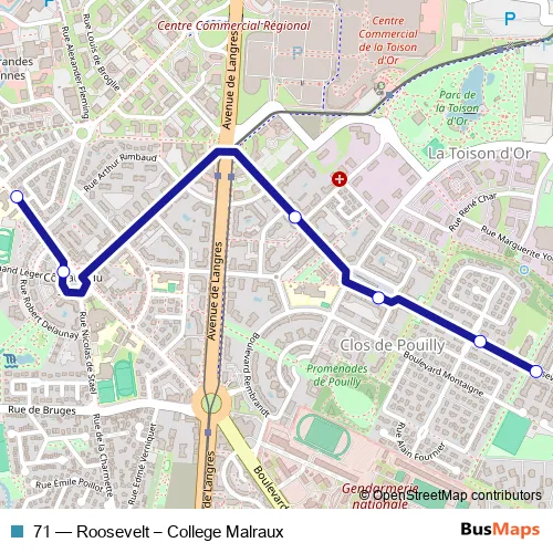 Bus 71 - Roosevelt – College Malraux Schedule in Dijon