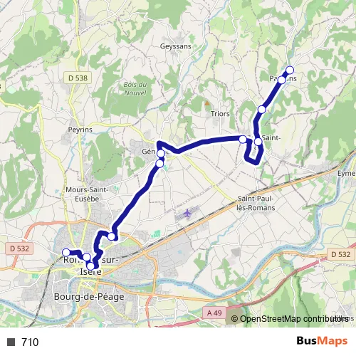The first stop of the 710 bus route is Lycee DU Dauphine and the last stop is Salle Polyvalente. 710 is operational during everyday.